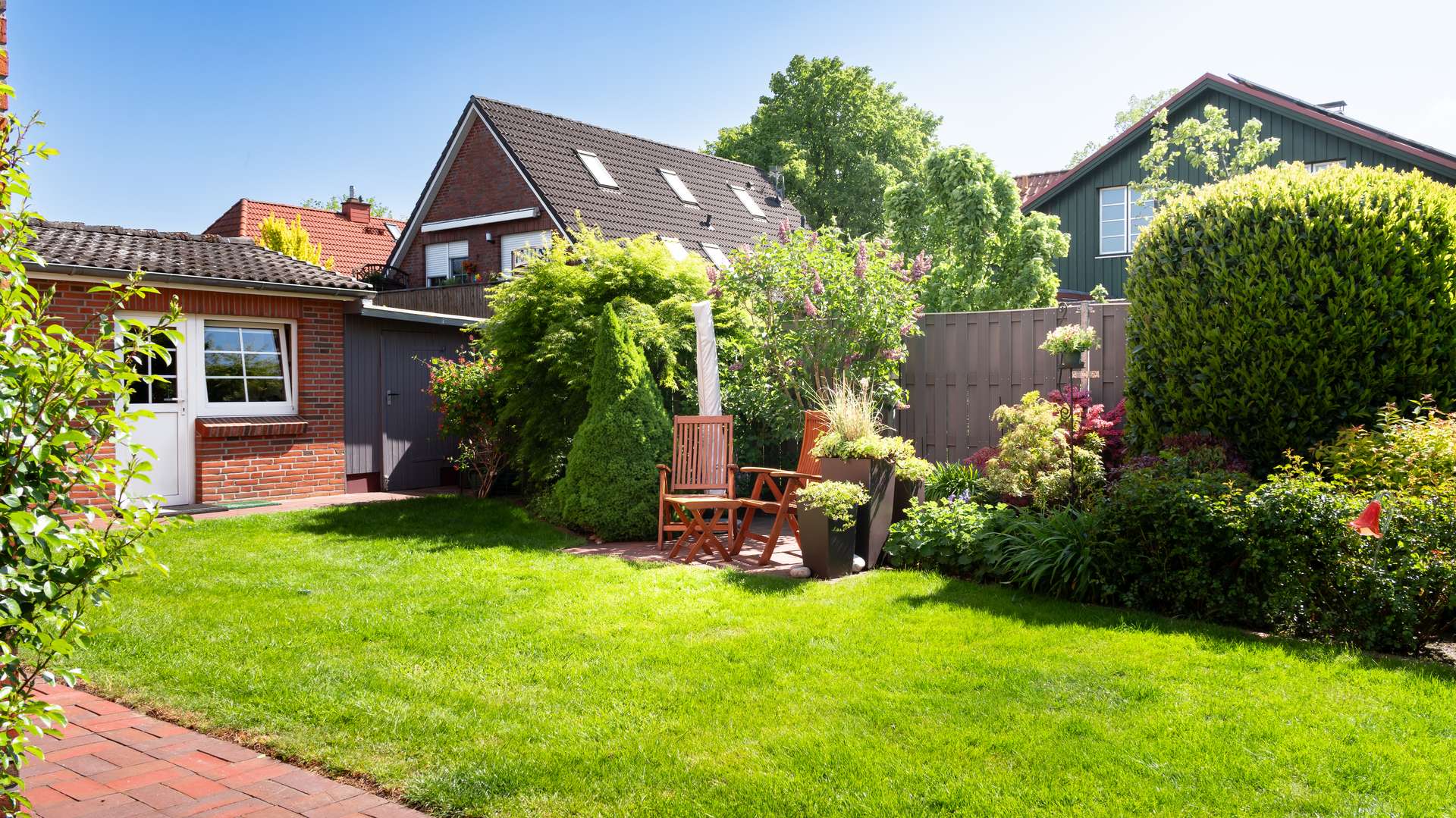 Zum Spielen, Entspannen und Genießen lädt der liebevoll angelegte Garten mit zwei Terrassen ein. Die Lage am Ende einer ruhigen Sackgasse sorgt für maximale Privatsphäre. Die großzügige Garage mit E-Ladebox, ein Schuppen, eine Werkstatt und ein großer Hauswirtschaftsraum sorgen für viel Stauraum und ausreichend Platz für Vorräte oder Hobbyequipment.